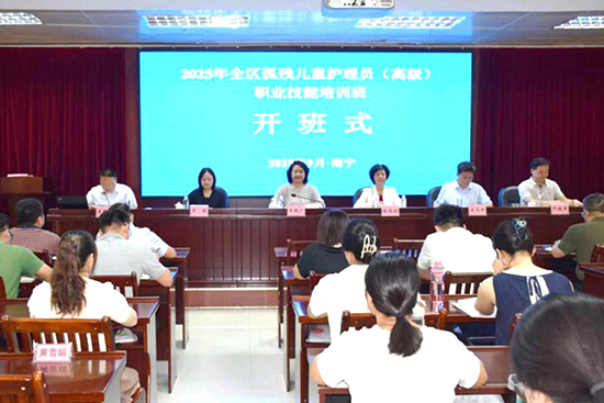 近日,自治区民政厅在南宁举办2025年全区孤残儿童护理员(高级)职业技能培训班,邀请民政部儿童福利司儿童福利处负责同志、广西护理学会以及参与编写审定孤残儿童护理员国家职业技能评价教材的专家、区内外儿童福利领域资深教师现场授课,培育“广西护理技能大师”,为全国孤残儿童护理员职业技能大赛“练兵蓄力”,助力“暖心民政”三年行动计划实施。自治区民政厅党组成员、副厅长王祝广出席开班式并讲话。